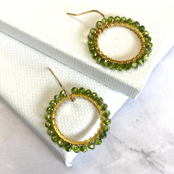 A small pop of colour that is dainty and perfect for those wanting something more discreet. Set on a 20mm gold plated OR rhodium plated (silver) hoop and finished off with either a gold plated or rhodium plated non-allergenic brass hook. Please note items are handmade and variations may occur.