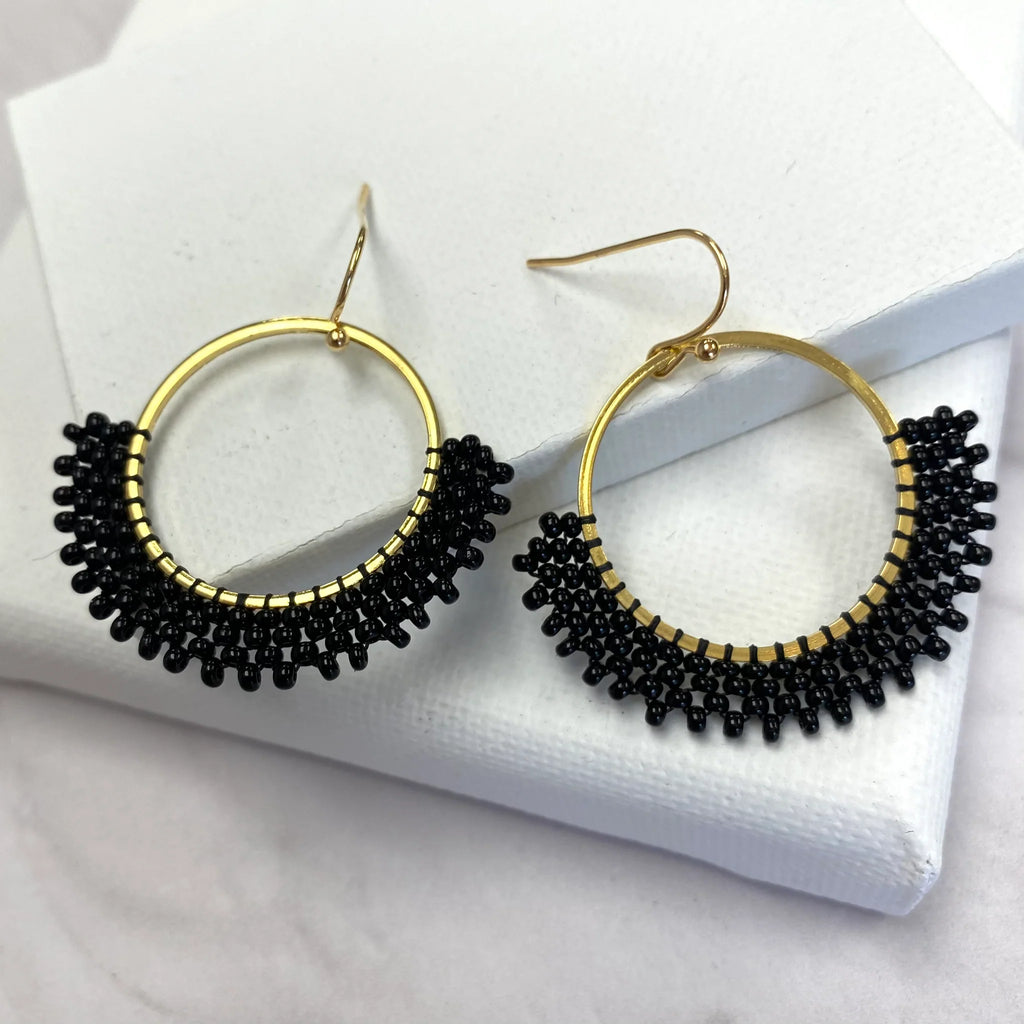 The beading on these earrings is done locally in South Africa by talented female crafters. Proceeds support lives and livelihoods. Please note items are handmade and variation may occur.