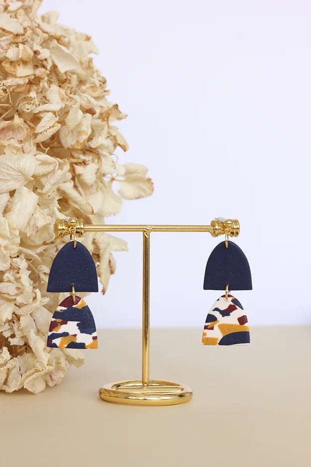 Terrazzo Clay Earrings (navy, mustard and maroon)