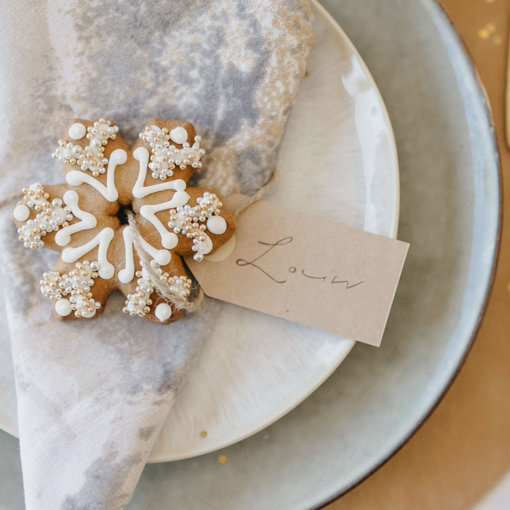 2 x stars, 1 x heart shaped biscuit (60g total), decorated with white icing. Finished off with red ribbon