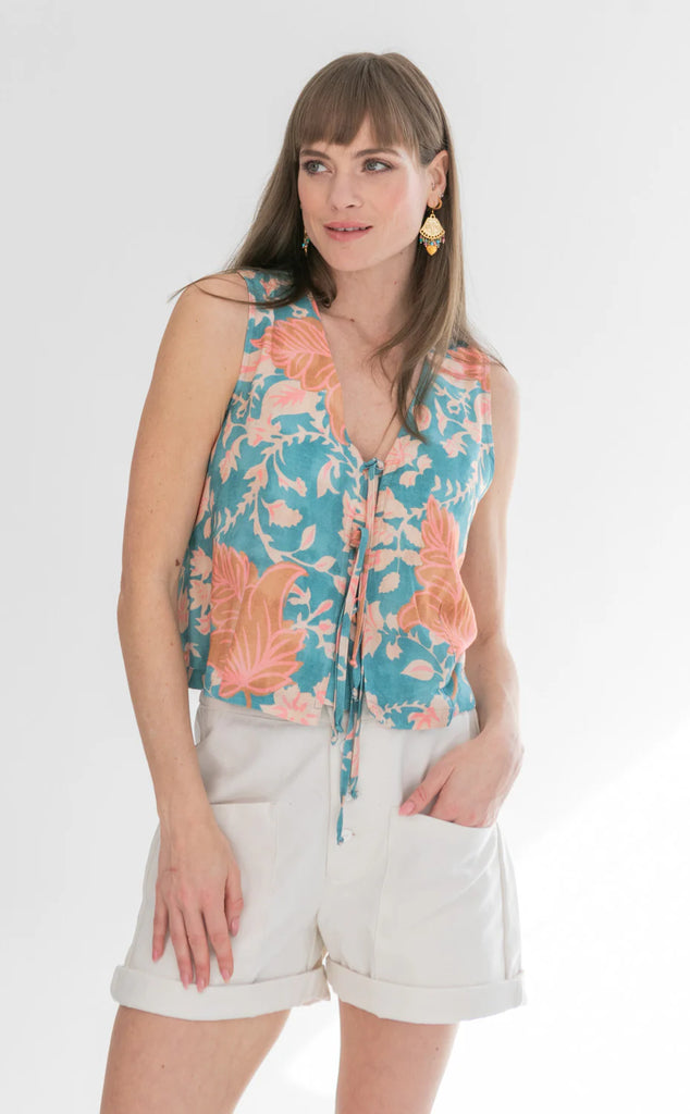 Effortlessly cool and beautifully refined, our new Wison Waistcoat is styled as a top for a modern, feminine look. It features a deep V neckline and three adjustable front ties, giving it a unique edge while allowing you to tailor the fit. The clean, sleeveless cut and soft structure make it easy to pair with high-waisted trousers, jeans or skirts.