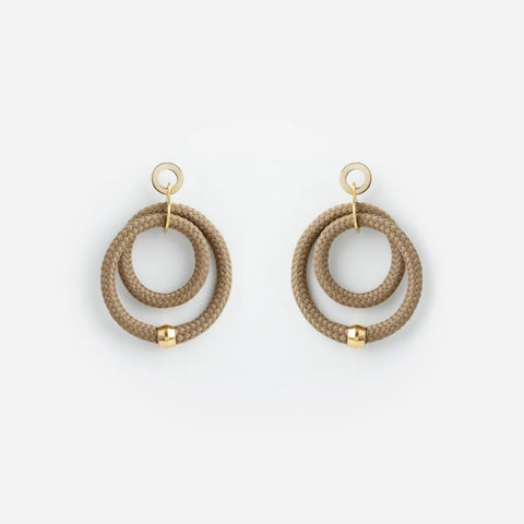 Brass studs with silver pins joined with braided rope and jasper or aventurine stones.